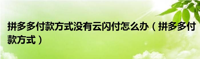 大家好,跳跳为你解答以上问题。拼多多付款方式没有云闪付怎么办,拼多多付款方式这个问题很多人还不知道,现在让我们一起来看看吧!