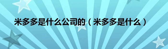 大家好,跳跳为你解答以上问题。米多多是什么公司的,米多多是什么这个问题很多人还不知道,现在让我们一起来看看吧!