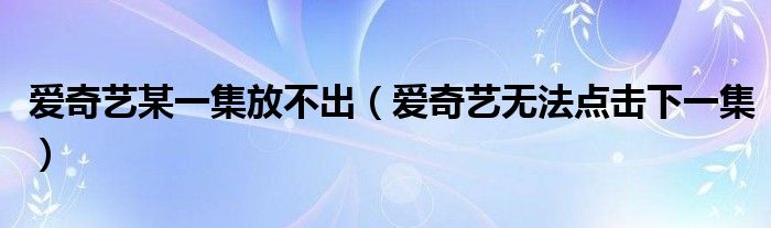 大家好,跳跳为你解答以上问题。爱奇艺某一集放不出,爱奇艺无法点击下一集这个问题很多人还不知道,现在让我们一起来看看吧!