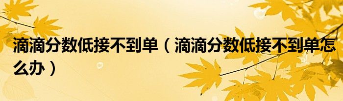 大家好,跳跳为你解答以上问题。滴滴分数低接不到单,滴滴分数低接不到单怎么办这个问题很多人还不知道,现在让我们一起来看看吧!
