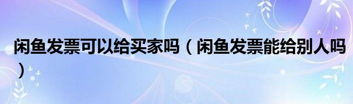 解答:1、免费的鱼发票可以给别人。在闲鱼上卖东西,把东西卖给别人。如果有纸质发票,可以交给对方。