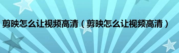 大家好,跳跳为你解答以上问题。剪映怎么让视频高清,剪映怎么让视频高清这个问题很多人还不知道,现在让我们一起来看看吧!