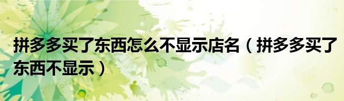 拼多多买了东西怎么不显示店名(拼多多买了东西不显示)