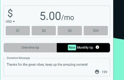使用Streamlabs造物主认购似乎快要那样简单的公司早先捐赠工具或引爆功能已经在平台上存在。创作者可以在设置中启用或禁用每月提示,以及设置特定的订阅价格。还可以选择让观众支付他们想要的任何金额,并在直播期间发送可兑换的每月小费通知。来自小费的钱直接存入创作者的 PayPal 账户,Streamlabs 表示不会减少,但付款需要支付处理费。
