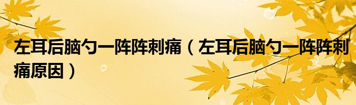 大家好,linda来为大家解答以上的问题。左耳后脑勺一阵阵刺痛,左耳后脑勺一阵阵刺痛原因很多人还不知道,现在让我们一起来看看吧!