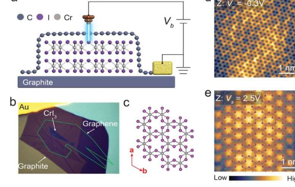 一新加坡国立大学研究小组从化学系的教授炯鲁的带领下,新加坡国立大学已经证明STM的应用研究绝缘反铁磁铬(III)碘(CRI 3)通过与基于石墨烯的范德华异质结构(见图)将它们的晶体。这项工作是与国大材料科学与工程系的Kostya S. Novoselov教授合作进行的。他们的技术扩展了STM的能力,使其能够用于研究绝缘材料,从而获得有关2-D磁体中磁序的见解。