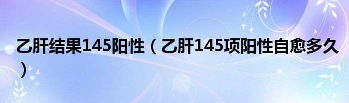 大家好,linda来为大家解答以上的问题。乙肝结果145阳性,乙肝145项阳性自愈多久很多人还不知道,现在让我们一起来看看吧!