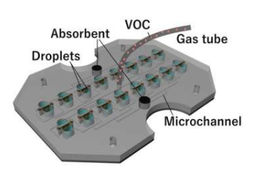 竹内说:“受体与液滴中的分子发生反应,因此主要的挑战之一是制造一种将分子从空气中移植到这些液滴中的装置。” “我们在液滴通过的地方设计并制造了微尺度的缝隙,以迫使这种分子交换。通过将气体引入微缝隙,我们能够提高气体与液滴之间的接触可能性,并将目标分子有效地转移到流体中。”