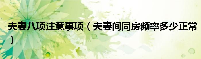大家好,linda来为大家解答以上的问题。夫妻八项注意事项,夫妻间同房频率多少正常很多人还不知道,现在让我们一起来看看吧!
