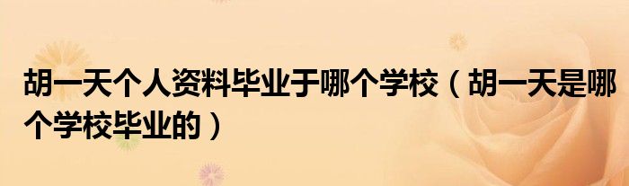 大家好,小晋来为大家解答以下问题,关于胡一天个人资料毕业于哪个学校,胡一天是哪个学校毕业的很多人还不知道,今天让我们一起来看看吧!