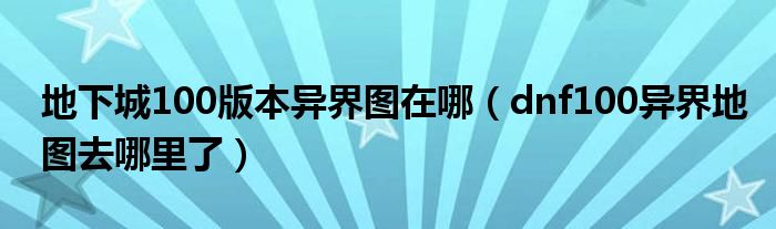 地下城100版本异界图在哪(dnf100异界地图去哪里了)