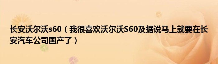 大家好,小常来为大家解答以下问题,对于长安沃尔沃s60,我很喜欢沃尔沃S60及据说马上就要在长安汽车公司国产了很多人还不知道,今天让我们一起来看看吧!