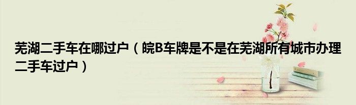 1,皖B车牌是不是在芜湖所有城市办理二手车过户?:只要是芜湖市区的可以在芜湖市车管所可以办理,芜湖三县可以在当地办理