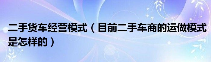 大家好,小常来为大家解答以下问题,对于二手货车经营模式,目前二手车商的运做模式是怎样的很多人还不知道,今天让我们一起来看看吧!