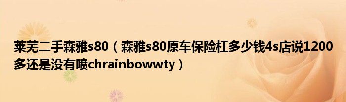 大家好,小常来为大家解答以下问题,对于莱芜二手森雅s80,森雅s80原车保险杠多少钱4s店说1200多还是没有喷chrainbowwty很多人还不知道,今天让我们一起来看看吧!