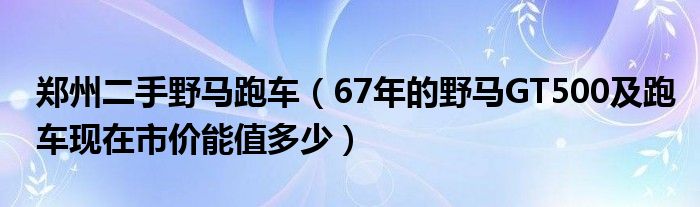 大家好,小常来为大家解答以下问题,对于郑州二手野马跑车,67年的野马GT500及跑车现在市价能值多少很多人还不知道,今天让我们一起来看看吧!