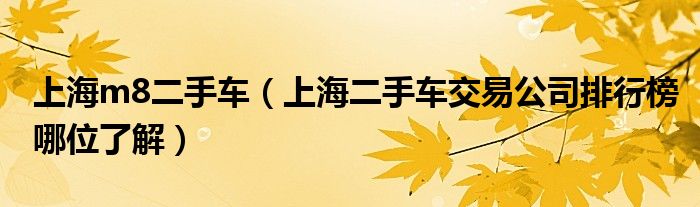 大家好,小常来为大家解答以下问题,对于上海m8二手车,上海二手车交易公司排行榜哪位了解很多人还不知道,今天让我们一起来看看吧!