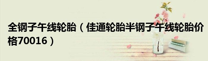 大家好,小常来为大家解答以下问题,对于全钢子午线轮胎,佳通轮胎半钢子午线轮胎价格70016很多人还不知道,今天让我们一起来看看吧!