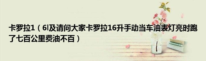 大家好,小常来为大家解答以下问题,对于卡罗拉1,6l及请问大家卡罗拉16升手动当车油表灯亮时跑了七百公里费油不百很多人还不知道,今天让我们一起来看看吧!