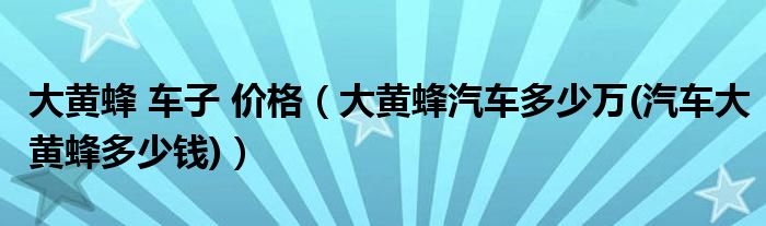 大家好,小常来为大家解答以下问题,对于大黄蜂 车子 价格,大黄蜂汽车多少万(汽车大黄蜂多少钱)很多人还不知道,今天让我们一起来看看吧!