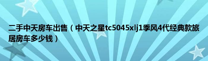 大家好,小常来为大家解答以下问题,对于二手中天房车出售,中天之星tc5045xlj1季风4代经典款旅居房车多少钱很多人还不知道,今天让我们一起来看看吧!