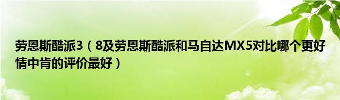 大家好,小常来为大家解答以下问题,对于劳恩斯酷派3,8及劳恩斯酷派和马自达MX5对比哪个更好情中肯的评价最好很多人还不知道,今天让我们一起来看看吧!