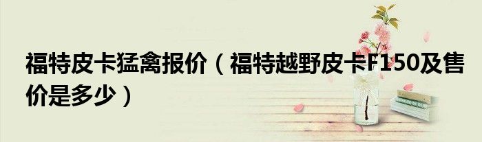 大家好,小常来为大家解答以下问题,对于福特皮卡猛禽报价,福特越野皮卡F150及售价是多少很多人还不知道,今天让我们一起来看看吧!