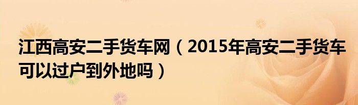 大家好,小常来为大家解答以下问题,对于江西高安二手货车网,2015年高安二手货车可以过户到外地吗很多人还不知道,今天让我们一起来看看吧!