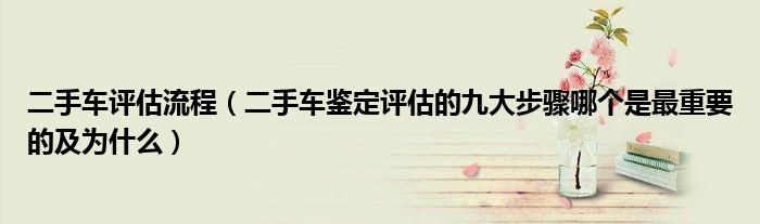 1,二手车鉴定评估的九大步骤哪个是最重要的 为什么 :您好,对于这个行业首先你得热爱,然后具有一定的语言表达能力和客户沟通能力,还有社交能力。因为现在二手车评估师不是纯粹的评估,还要收购,所以需要表达。最为重要的就是评估技术了,了解新车价是必须的。所以二手车评估师一定可以胜任销售,但销售却不一定可以评估。对于这个行业,前景特别好。祝你好运。一、外观涂装的检视二、钣金的更换及修复历(含机件检查)三、车身骨架的更换与修复历四、发动机底盘机件及内装配备