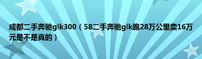 大家好,小常来为大家解答以下问题,对于成都二手奔驰glk300,58二手奔驰glk跑28万公里卖16万元是不是真的很多人还不知道,今天让我们一起来看看吧!
