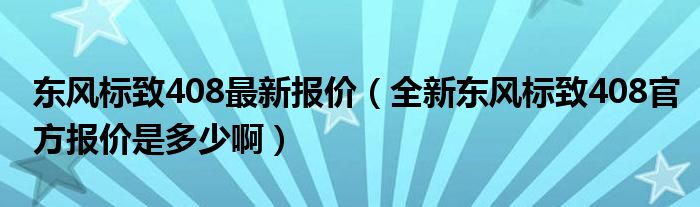 大家好,小常来为大家解答以下问题,对于东风标致408最新报价,全新东风标致408官方报价是多少啊很多人还不知道,今天让我们一起来看看吧!