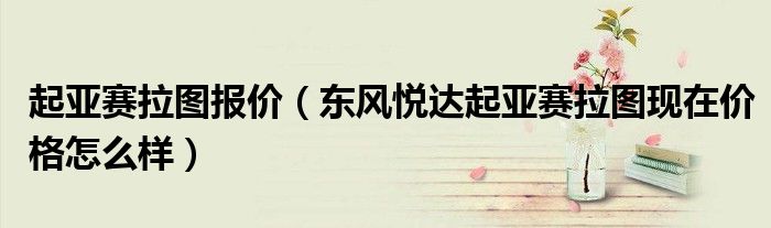 1,东风悦达起亚赛拉图现在价格怎么样:赛拉图1.6GLS MT-2 12.08万元 赛拉图1.8L手动SPORTS 14.38万元 赛拉图1.8L自动SPORTS 15.38万元 赛拉图1.8L自动GLS 14.28万元 赛拉图1.8L手动GLS 13.28万元 赛拉图1.6L自动GLS 13.18万元 赛拉图1.6L自动GL 11.78万元 赛拉图1.6L手动GLS 11.68万元 赛拉图1.6L手动GL 10.78万元