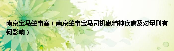 大家好,小常来为大家解答以下问题,对于南京宝马肇事案,南京肇事宝马司机患精神疾病及对量刑有何影响很多人还不知道,今天让我们一起来看看吧!