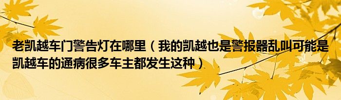 大家好,小常来为大家解答以下问题,对于老凯越车门警告灯在哪里,我的凯越也是警报器乱叫可能是凯越车的通病很多车主都发生这种很多人还不知道,今天让我们一起来看看吧!