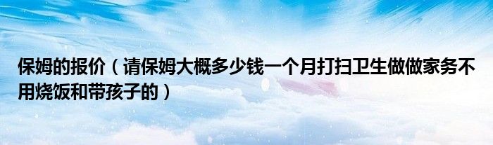 大家好,小常来为大家解答以下问题,对于保姆的报价,请保姆大概多少钱一个月打扫卫生做做家务不用烧饭和带孩子的很多人还不知道,今天让我们一起来看看吧!