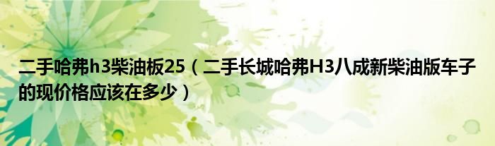 大家好,小常来为大家解答以下问题,对于二手哈弗h3柴油板25,二手长城哈弗H3八成新柴油版车子的现价格应该在多少很多人还不知道,今天让我们一起来看看吧!