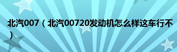 大家好,小常来为大家解答以下问题,对于北汽007,北汽00720发动机怎么样这车行不很多人还不知道,今天让我们一起来看看吧!