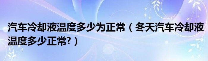 大家好,小美来为大家解答以上问题。汽车冷却液温度多少为正常,冬天汽车冷却液温度多少正常?很多人还不知道,现在让我们一起来看看吧!