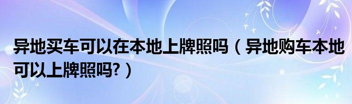 大家好,小美来为大家解答以上问题。异地买车可以在本地上牌照吗,异地购车本地可以上牌照吗?很多人还不知道,现在让我们一起来看看吧!