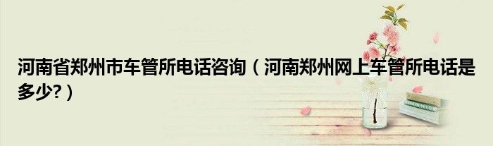 1、郑州车管所的电话有不少:郑州市车管所,地址是河南郑州大学路至郑平公路2000米,电话是0371-68903815。
