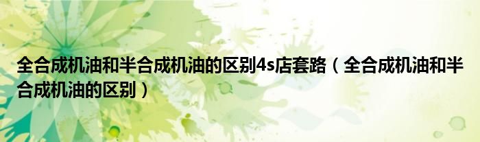 大家好,小美来为大家解答以上问题。全合成机油和半合成机油的区别4s店套路,全合成机油和半合成机油的区别很多人还不知道,现在让我们一起来看看吧!