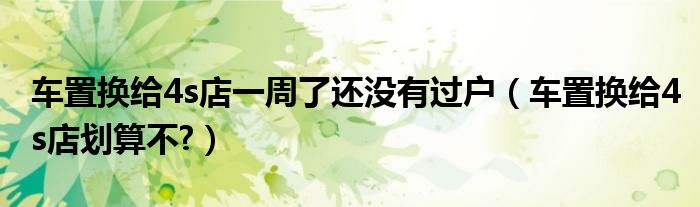 大家好,小美来为大家解答以上问题。车置换给4s店一周了还没有过户,车置换给4s店划算不?很多人还不知道,现在让我们一起来看看吧!