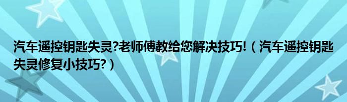 大家好,小美来为大家解答以上问题。汽车遥控钥匙失灵?老师傅教给您解决技巧!,汽车遥控钥匙失灵修复小技巧?很多人还不知道,现在让我们一起来看看吧!