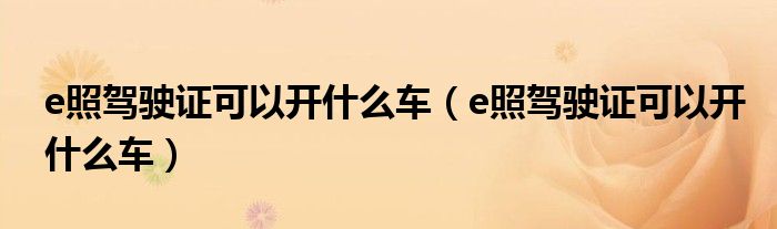 大家好,小美来为大家解答以上问题。e照驾驶证可以开什么车,e照驾驶证可以开什么车很多人还不知道,现在让我们一起来看看吧!