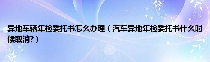 1、汽车异地年检委托书已于2018年9月取消。现在已经不能办理异地年检委托书了。你需要在当地申请年检委托书。办理异地车辆年检委托书需要的材料有:行驶证或登记证原件及复印件、交强险原件、注明车牌号、车主姓名、委托检验的省机动车名称的信息申请书。