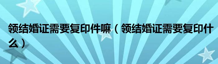 关于领结婚证需要复印件嘛,领结婚证需要复印什么这个很多人还不知道,今天菲菲来为大家解答以上的问题,现在让我们一起来看看吧!