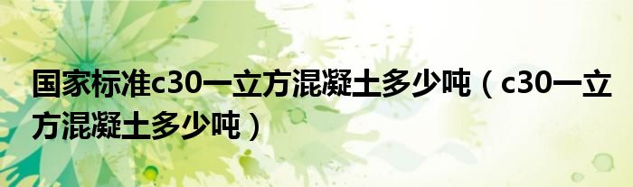 关于国家标准c30一立方混凝土多少吨,c30一立方混凝土多少吨这个很多人还不知道,今天菲菲来为大家解答以上的问题,现在让我们一起来看看吧!