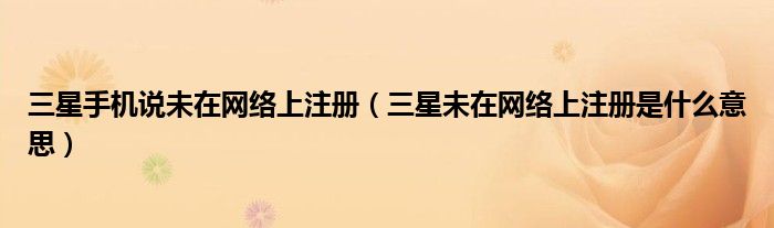 关于三星手机说未在网络上注册,三星未在网络上注册是什么意思这个很多人还不知道,今天菲菲来为大家解答以上的问题,现在让我们一起来看看吧!