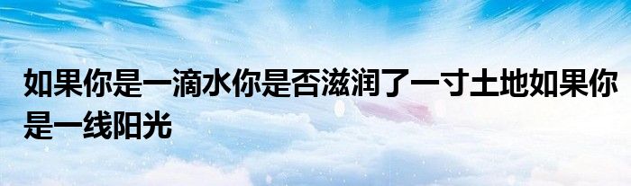 关于如果你是一滴水你是否滋润了一寸土地如果你是一线阳光这个很多人还不知道,今天菲菲来为大家解答以上的问题,现在让我们一起来看看吧!