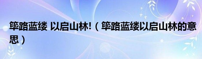 关于筚路蓝缕 以启山林!,筚路蓝缕以启山林的意思这个很多人还不知道,今天菲菲来为大家解答以上的问题,现在让我们一起来看看吧!